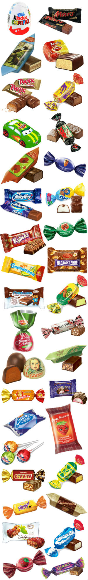 Халва в шоколаде (1 шт), Конфеты "Птичье молоко" (1 шт), Конфеты "Ешкина коровка" (1 шт), Конфеты "Звонкое лето" (1 шт), Конфеты "Коровка" (1 шт), Конфеты "Батончик Рот-Фронт" (1 шт), Конфеты "Желато-мармелато" (1 шт), Конфеты "Фонарики" (1 шт), Конфеты "Звездный дождь" (1 шт), Конфеты "Картошка" (1 шт)